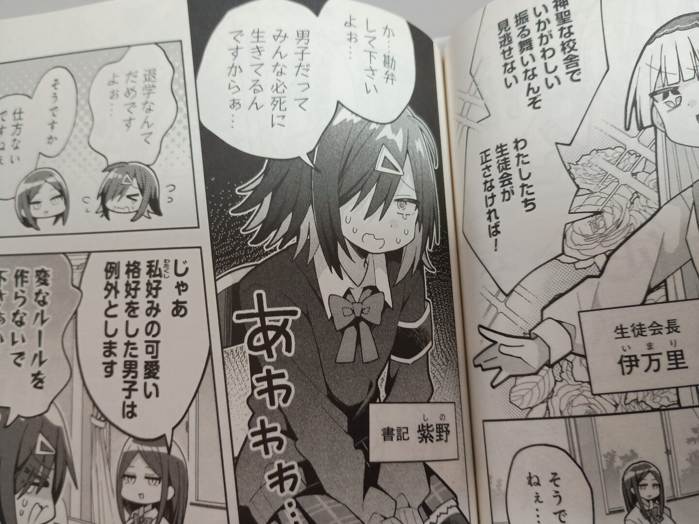 生徒会と晴太&三咲君が出会ったシーンの。三咲君が男の恰好をしてる事に不満を持った生徒会の